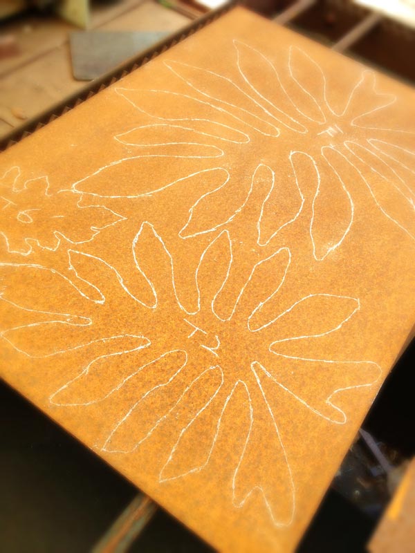 中心の葉脈あたりを叩き、裏から膨らみを叩きだし、、、