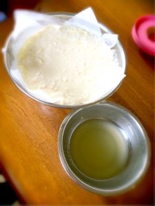 クリームチーズを手作りして、乳清がたくさん集まりましてね。