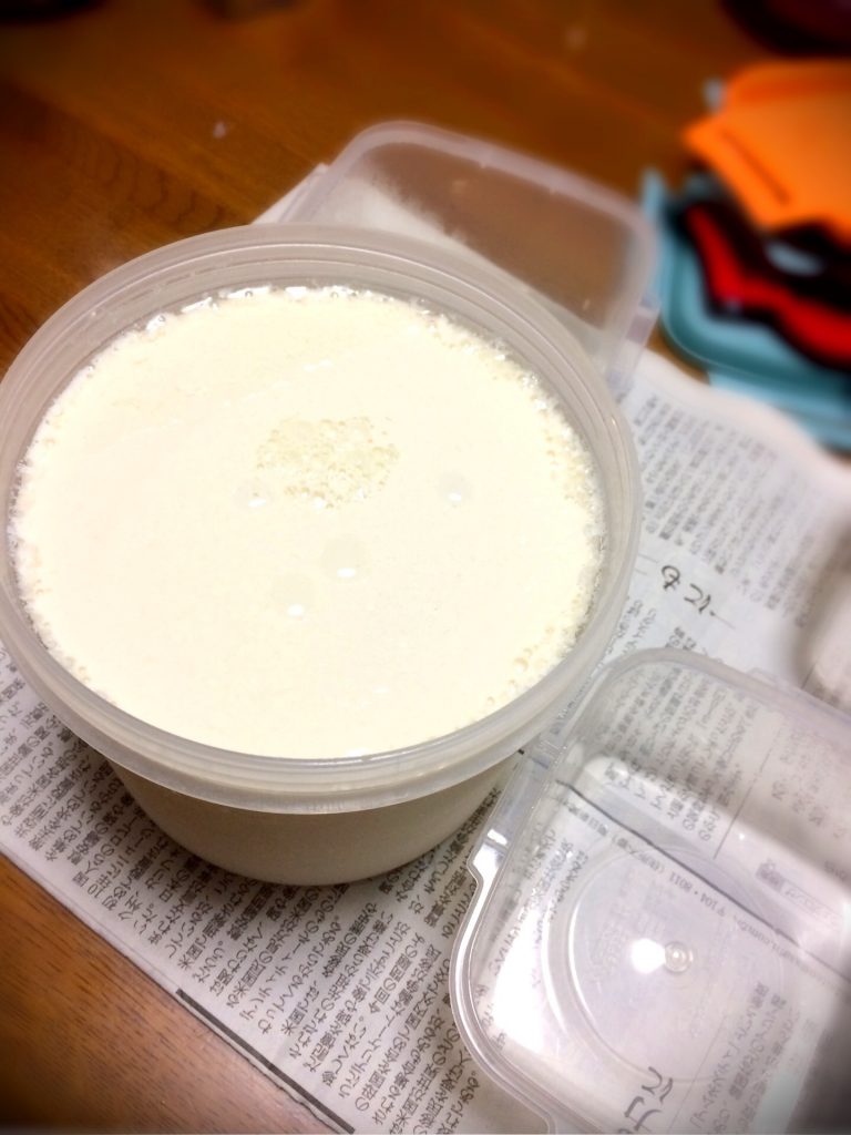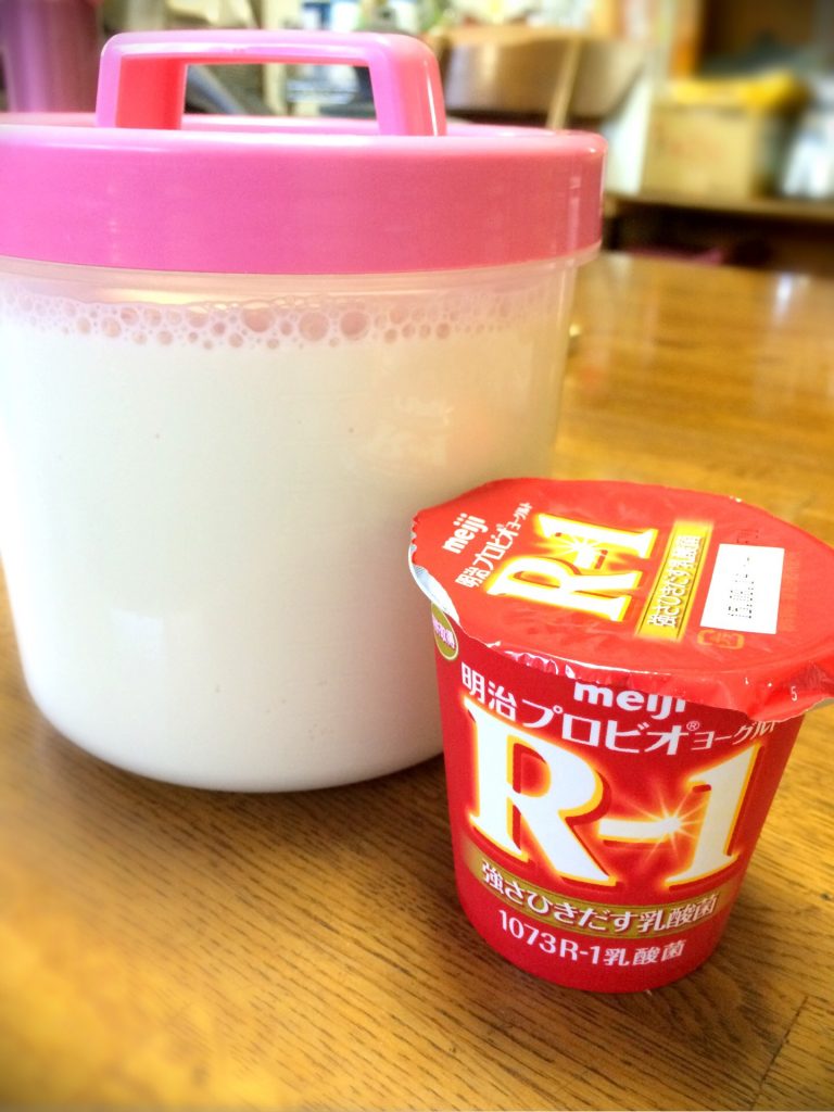 3,4回繰り返して作り、だいたい月一で再度市販のR-1で作りなおしてます。