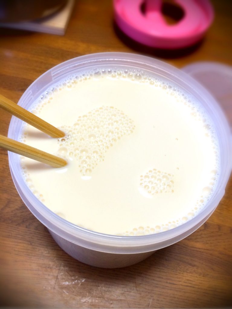 まぁ、トロトロにしても、豆乳に入れれば下部に沈殿しちゃいますから、ゆっくりしっかり混ぜておきます。