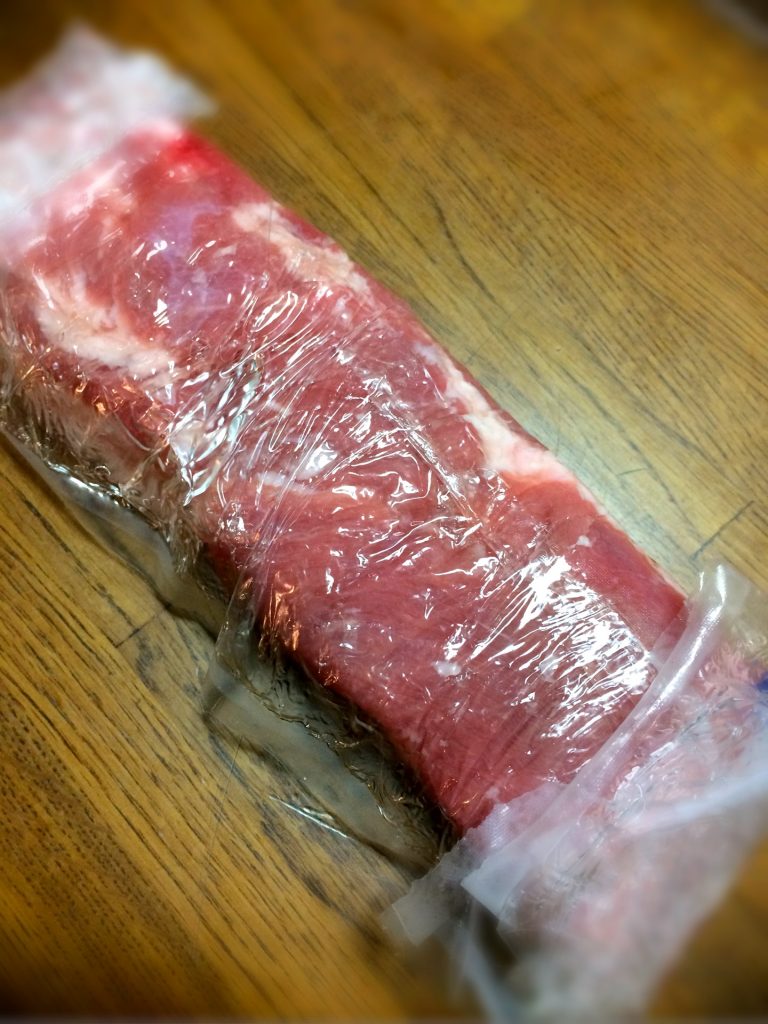 ちなみに、脂肪層(多分皮側)を下にしておくようです。
