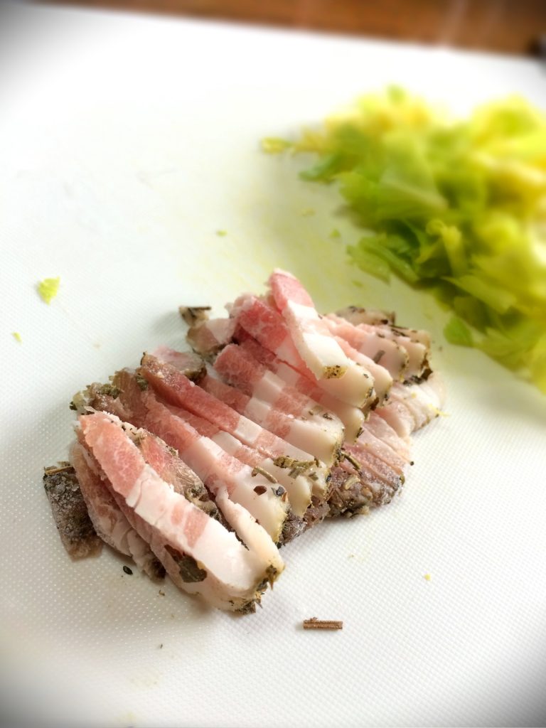 塩分控えめとは言っても市販ベーコンより塩っぱいです。