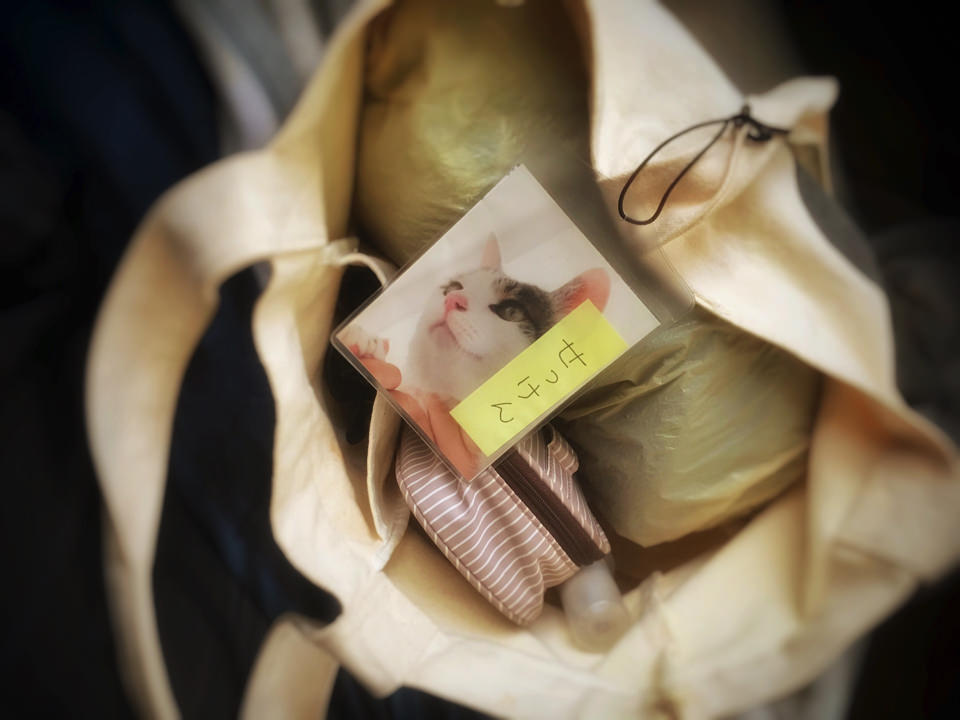 それを、旅行かばんについていたビニールのタグに入れ、