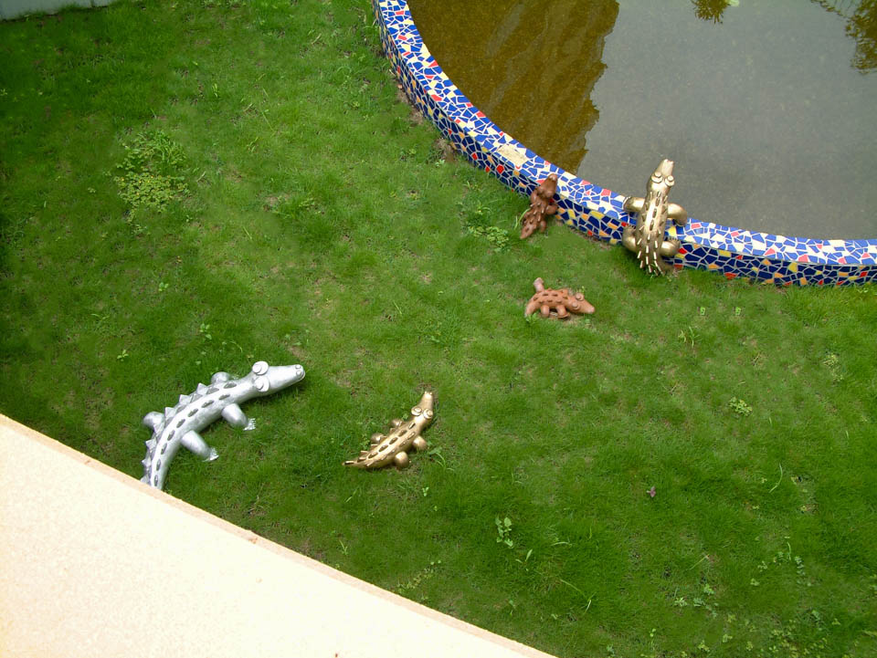 「ワニ太の庭」はセンタープラザの中庭、池の周りに設置されました。